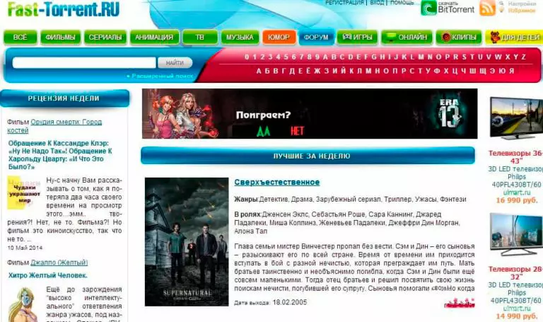Данный торрент создан для скачивания сериалов и представляет своим пользователям огромнейшую базу с развлекательным контентом. Любой сериал, даже самый старый, вы сможете найти и скачать в полном объеме для домашнего просмотра.