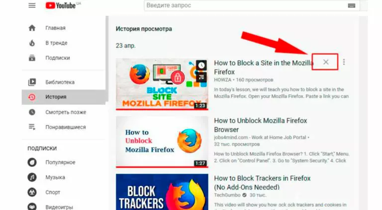 - нажмите расположенный справа от результата поиска крестик, чтобы это видео сразу же удалилось.