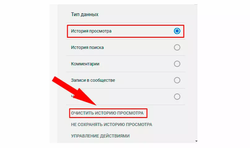 - в разделе с историей выбрать опцию очистки истории просмотра;