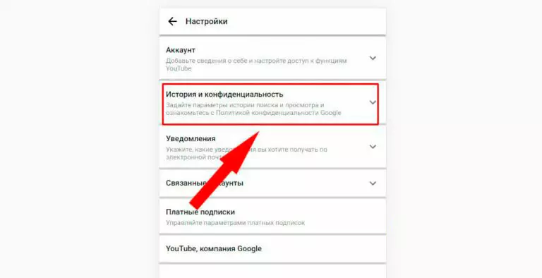 Удаление истории просмотра и поиска в YouTube на смартфоне