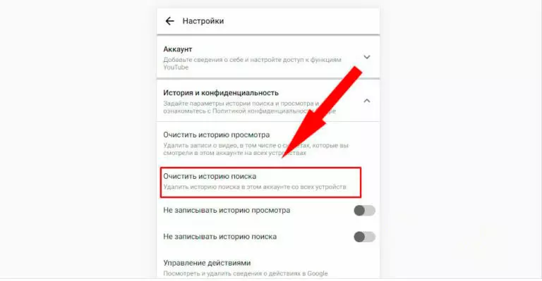 - задать очистку истории поиска и подтвердить свое решение. В этом случае удалится полностью вся история видео из вашего аккаунта.