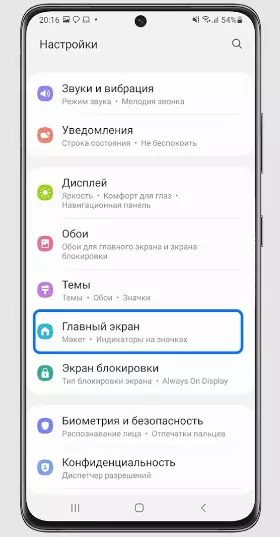 В открывшемся окне перейдите в раздел «Главный Экран». Если на вашем смартфоне установлена операционная система серии 11, 12 или 13, то данный шаг следует пропустить (перейдя сразу к следующему).