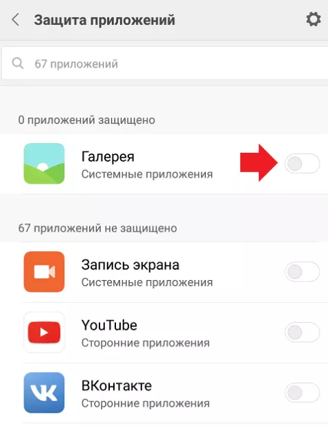 На смартфонах Xiaomi, функционирующих на базе ОС Андроид, принцип скрытия приложений немного отличается. Производится операция также через настройки, раздел «Приложения». Далее необходимо перейти в папку «Защита приложений» (расположена внизу страницы).